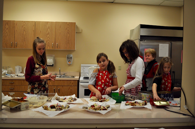 | Some of our servers arranging plates of Christmas goodies. |