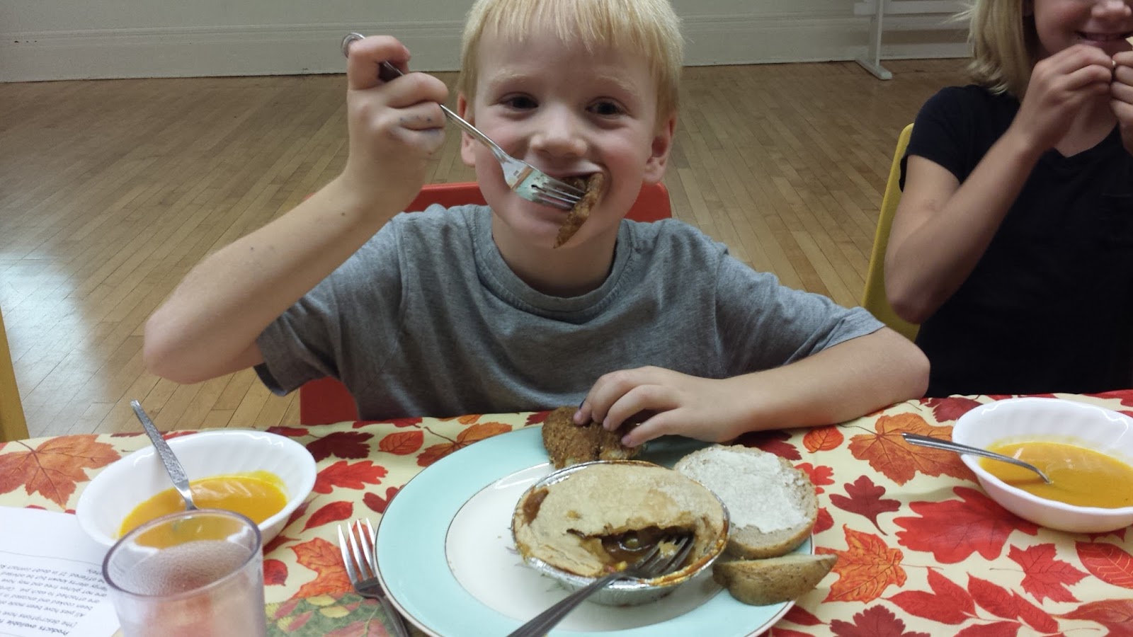 Rob had brought us all a special treat - some samples of the meat pies that are now on sale as a part of a fund-raiser for the church. He brought turkey, beef, ground beef and shepherds' pie pies.