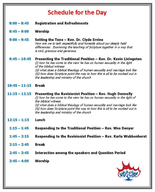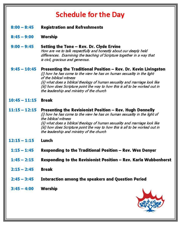 Registration is now full and closed, so attending the event will not be a possibility for most now. Nevertheless, the Presbytery of Hamilton will be broadcasting the event live on the internet and you can watch the entire thing by clicking on the link below.