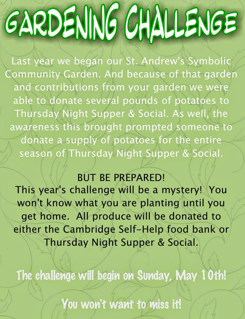 The Thursday Night Supper is free to anyone who wants to come for dinner, at St. Andrew's Hespeler, every week from October until April.