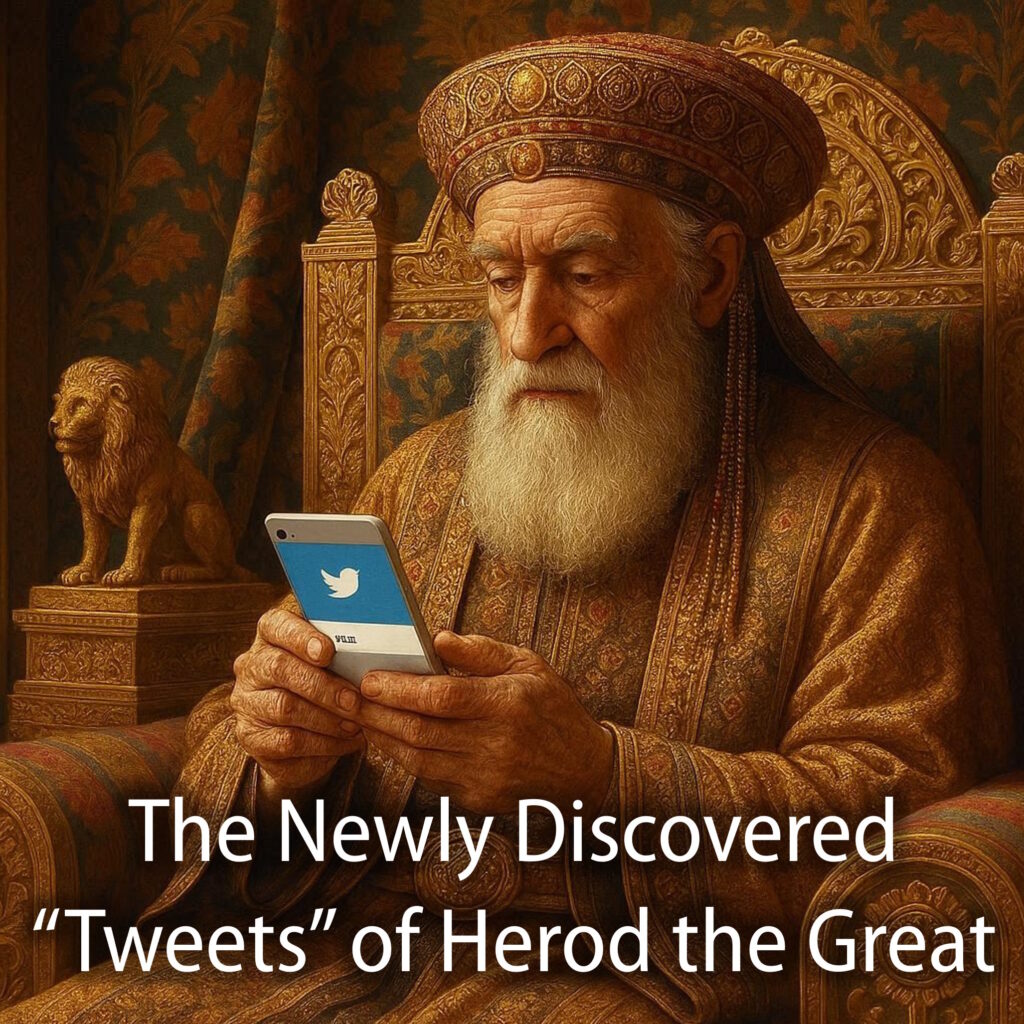 There were, to be honest, thousands upon thousands of these posts. Sometimes Herod would be up all night dictating them. But they were all thought to be lost to history. But recently, a few of these long-lost texts were discovered in a trash heap at Herod’s palace at Masada. And these texts have given us an incredible insight into the twisted mind of an ancient authoritarian.
